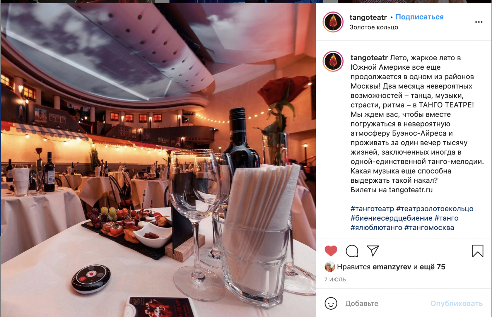ТАНГО ТЕАТР — это иммерсивный проект на базе театра «Золотое кольцо». Спектакль «Биение. Сердце. Биение» претерпел некоторые изменения, расширился и снова нашел своего зрителя под руководством продюсеров «Пиковой дамы» и «Золотого кольца».