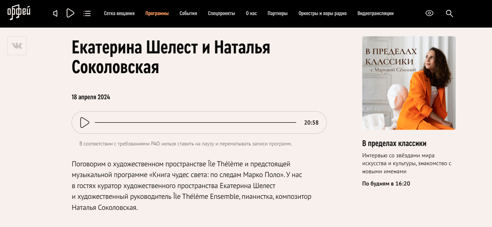 - Радио «Орфей» — станция классической музыки с самой требовательной аудиторией
